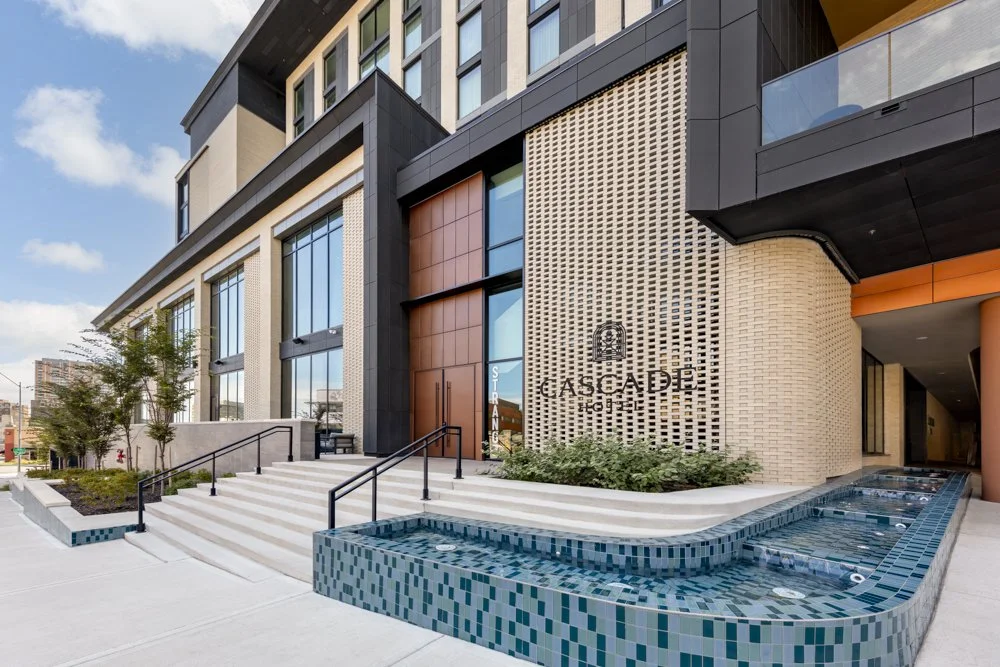 Cascade Hotel (Marriott Tribute), boasts 150,000 square feet over ten stories. The hotel features 300 rooms, a ballroom, restaurant, gym, spa, coffee bar and lounge, rooftop bar, and private offices.