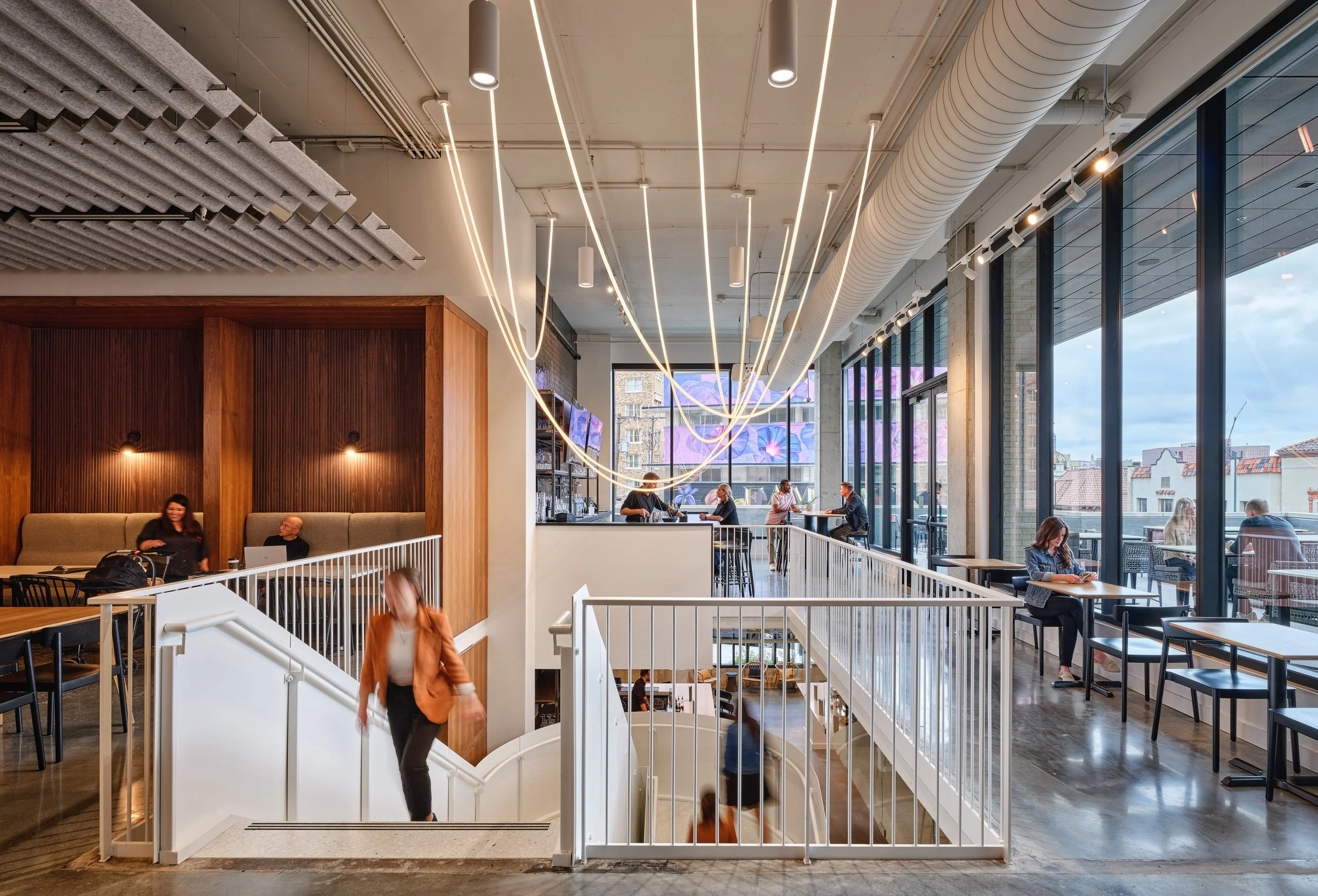 Located inside the Cascade Hotel, the Strang Chef Collective is a chef-driven food hall serving breakfast, lunch, and dinner. It spans two floors and outdoor dining space and includes two full-service bars.