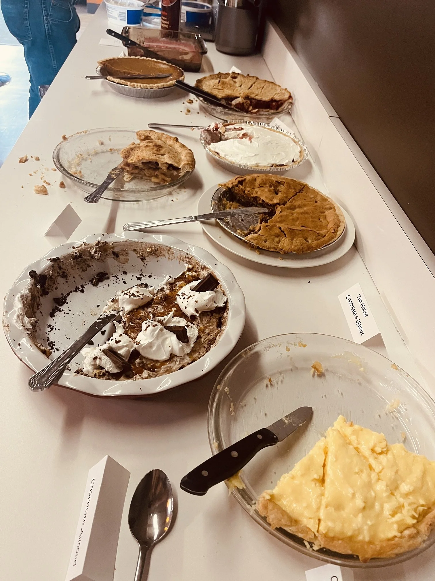 The choices are never-ending. We've got cherry, we've got apple, we've got pumpkin, we've got coconut cream, we've got chocolate almond...........