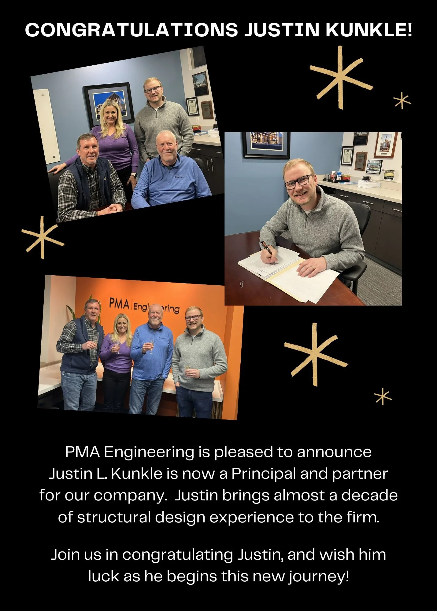 Congratulations Justin Kunkle! Team Updates Jan 2 Written By We're thrilled to announce Justin Kunkle has become Principal and partner of PMA! Justin KunklePromotion