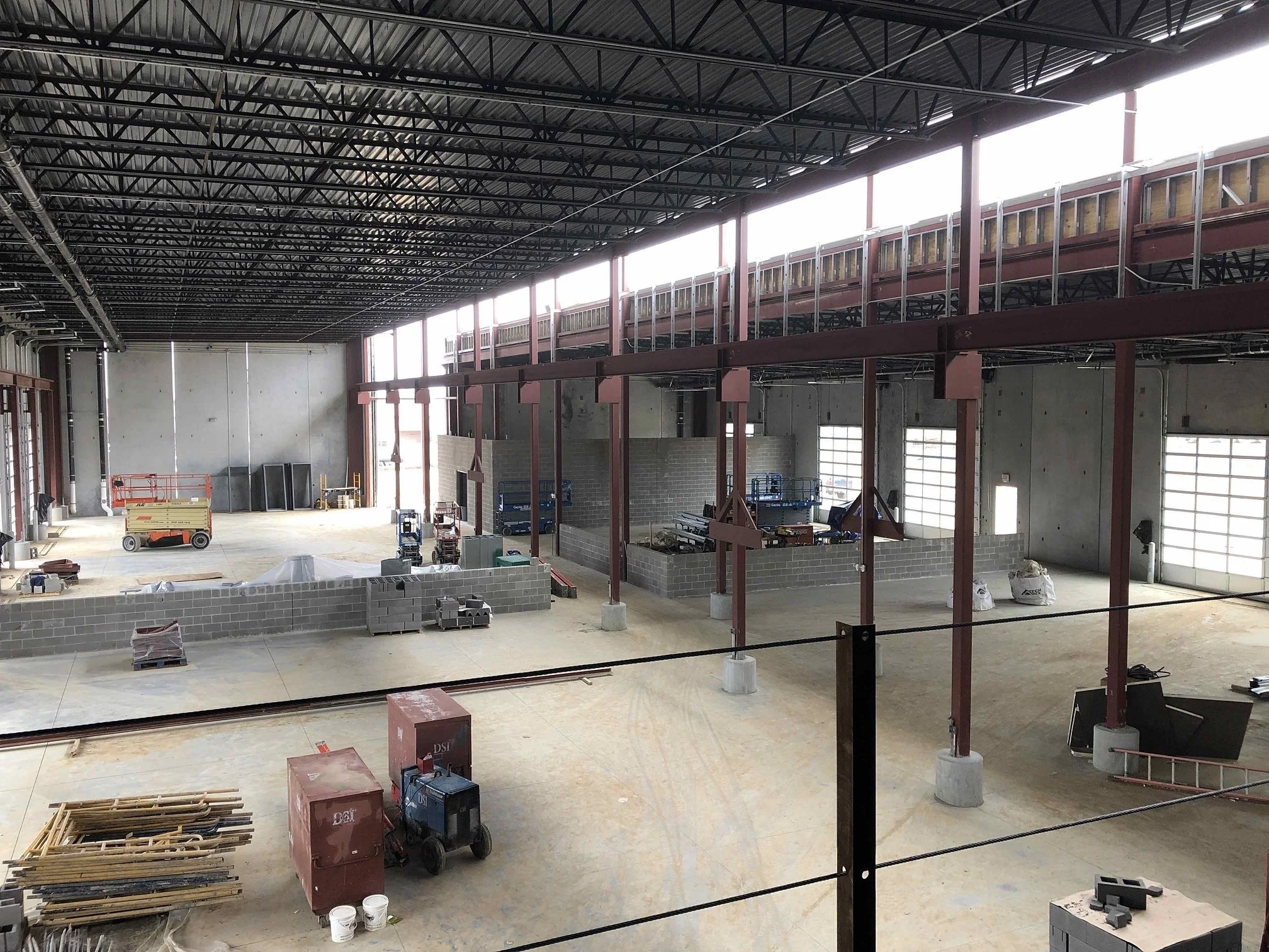 Interior CMU partition installation, mezzanine framing and other construction activities not pictured continue at the new Overland Park Central Fleet Maintenance facility located at Antioch Rd. & US-69 Hwy. The project will feature a storage mezzanine, 10-ton bridge crane, vehicle wash bay, and house other essential vehicle service equipment for the City of Overland Park. Construction progress can be followed via the camera at the link below (Photos courtesy of Harmon Construction). https://app.oxblue.com/open/harmon/overlandpark
