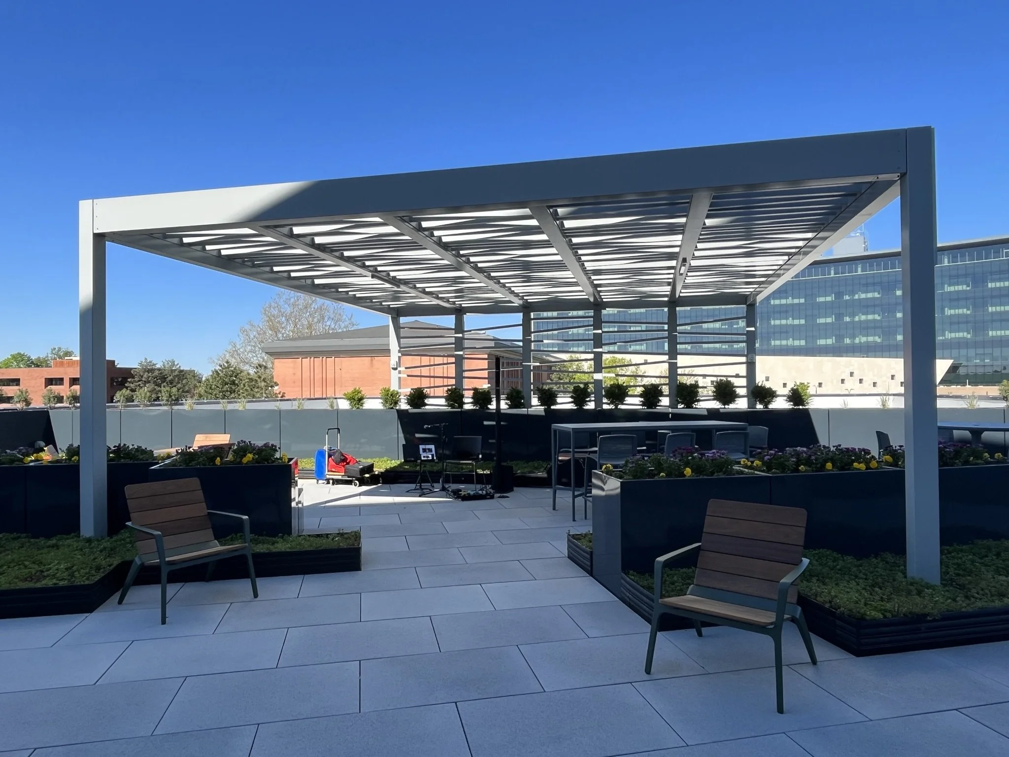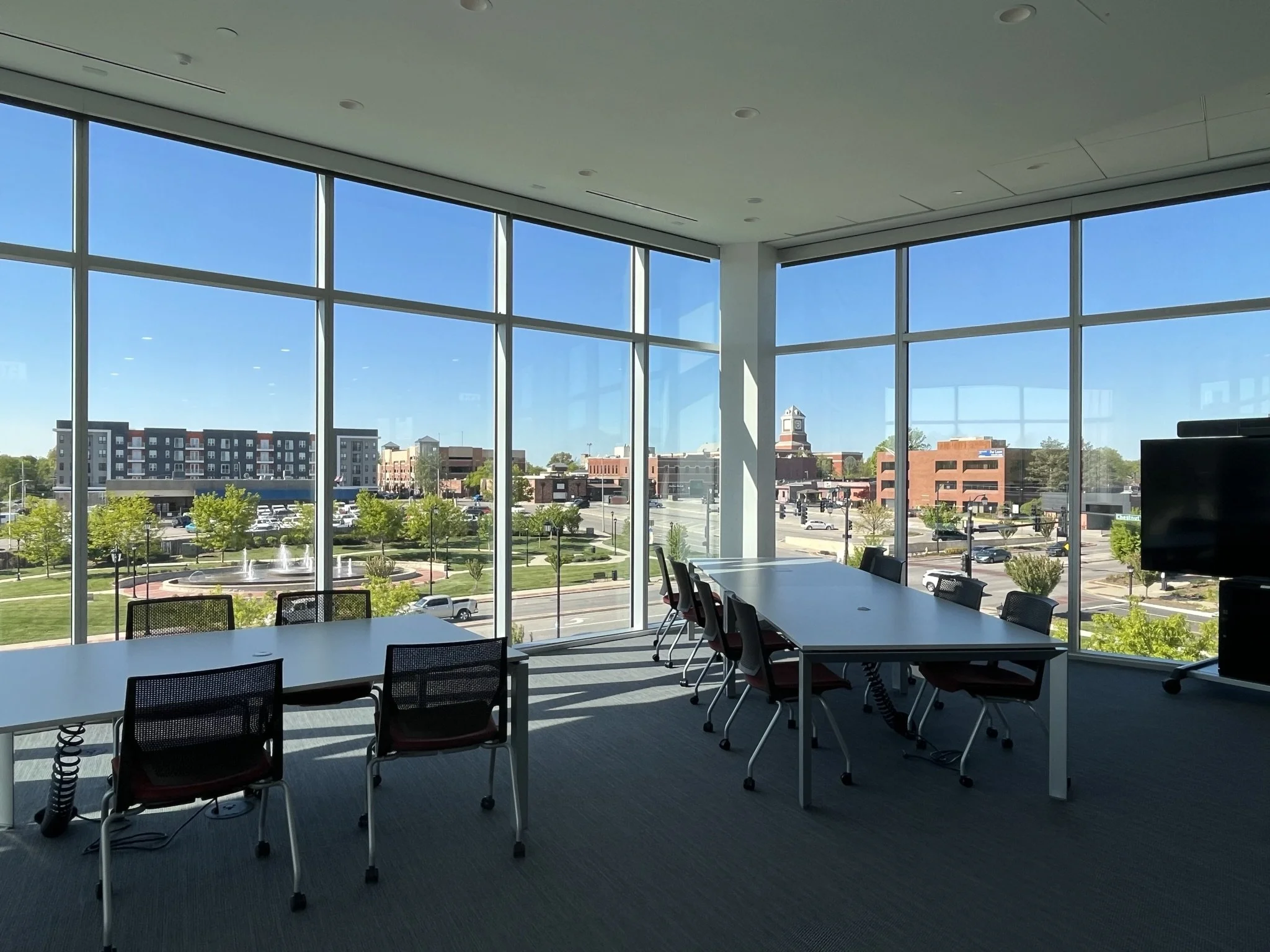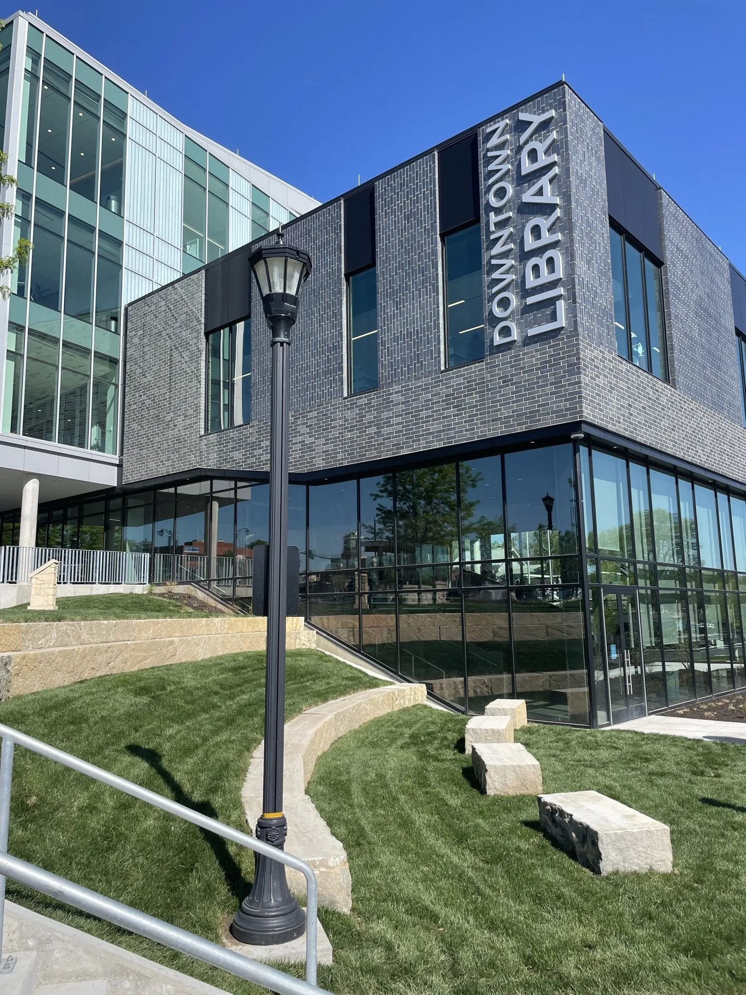 The new library had been months-in-the waiting, and the community couldn't have been more pleased with the beauty of this great, modern, light-infused space! The 4-story building is a true community center both inside and out at the heart of downtown Olathe.