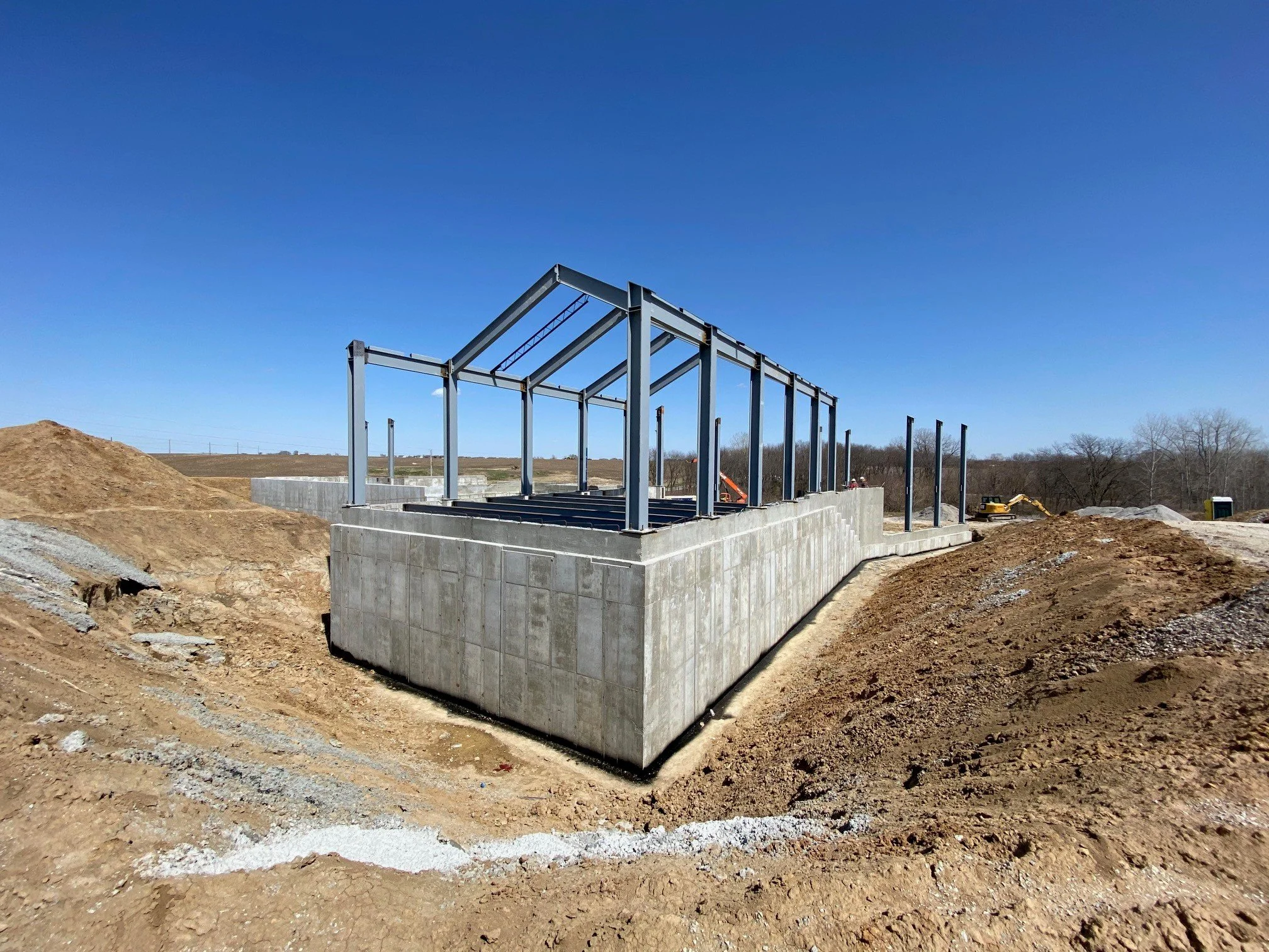 PMA Engineering was onsite yesterday at the Stanley Herzog Foundation jobsite in Smithville, MO to observe foundation and steel erection progress. It won’t be long before the ground level framing is in place! See some photos of the progress below.