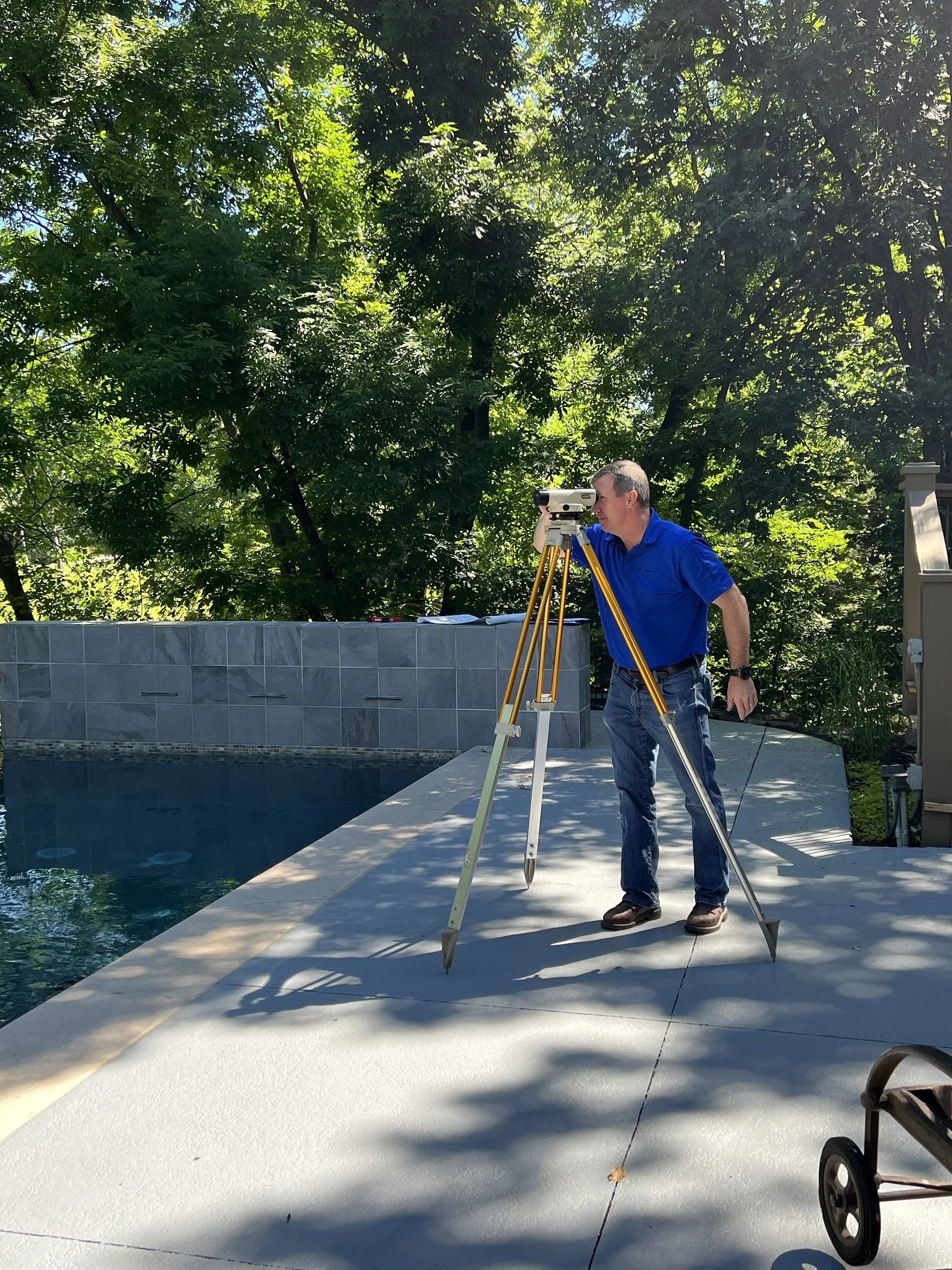 Jeff and Amy Brown, our summer intern from KU, spent the morning recording elevations of an infinity pool overflow edge at a residence in Leawood, KS. It was a great day for outdoor work!